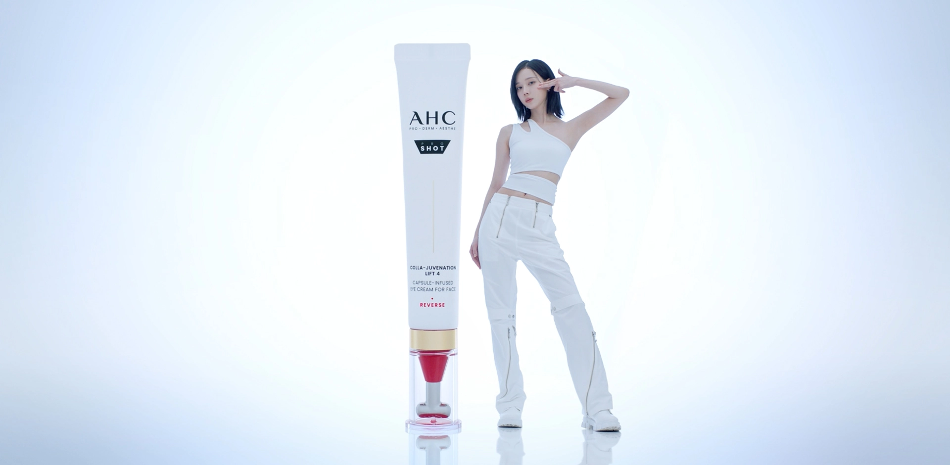 2025 Skin Game 팝업스토어를 통해 성공적인 도약한 티샷 아이크림, 2026 AHC의 새로운 앰배서더 윈터와 함께 타겟에게 더욱 확장 된 브랜드 메시지를 제시합니다. T-SHOT은 2030 타깃의 비교적 깊지 않은 눈가주름을 보다 정밀하게 케어할 수 있는 제품으로 이러한 강점을 직관적으로 표현하기 위해 사격 요소를 모티브로 활용하였습니다. 눈가 주름을 정밀 타깃하는 티샷 아이크림의 기술력을 시각적으로 구현하여 스킨케어 브랜드 전문성이 자연스럽게 인지될 수 있도록 기획하였습니다.